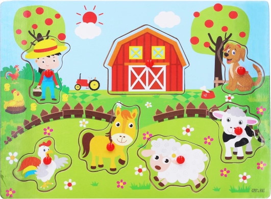 Acest puzzle din lemn cu animale de fermă este o jucărie educativă și distractivă, ideală pentru copii care vor să își dezvolte abilitățile motorii fine și logica.