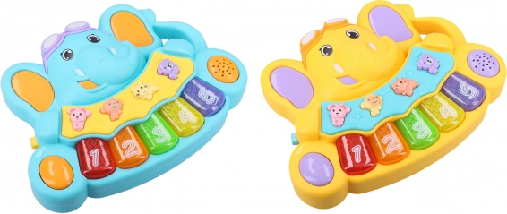 Pianino-ul în formă de elefant aduce bucurie și distracție copiilor datorită melodiilor și sunetelor de animale. Jucăria este realizată din plastic ușor, iar datorită dimensiunilor sale de 17 x 13 x 5 cm copiii o pot prinde ușor în mână. Efectele luminoase și sonore sporesc atractivitatea pianinoului și susțin percepția senzorială și coordonarea. Funcționează cu 3 baterii AA (nu sunt incluse).