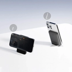 Datorită funcției Pass-Through, powerbank-ul poate funcționa simultan ca încărcător de birou – când este conectat la alimentare, își încarcă în același timp propria baterie și dispozitivul. Corpul compact cu suport pliabil permite vizionarea confortabilă a videoclipurilor sau apeluri video fără a ține telefonul în mână. Indicatorul LED cu patru diode afișează clar nivelul de încărcare.