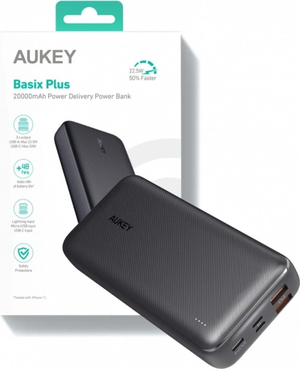 Powerbank-ul Aukey este partenerul ideal pentru călători sau pentru cei care petrec mult timp departe de prize. Cu o capacitate de 20 000 mAh, poate încărca de mai multe ori iPhone-ul tău sau alte dispozitive. Oriunde ai merge, vei avea întotdeauna suficientă energie.