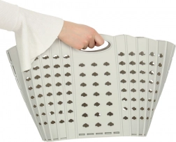 Coșul se pliază în câteva clipe la format plat și se depozitează ușor în spații înguste. Ideal pentru apartamente mici și călătorii.