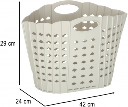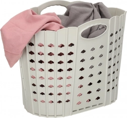 Mânerele ergonomice asigură transport confortabil chiar și la încărcare maximă. Nuanța neutră de gri se potrivește oricărui interior, iar coșul poate fi folosit nu doar pentru rufe, ci și pentru prosoape, haine pentru copii și alte textile.
