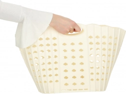 Coșul se pliază ușor la dimensiuni plate și se poate depozita în dulap, sub pat sau în spatele ușii. Ideal pentru locuințe mici și pentru călătorii.