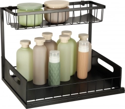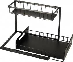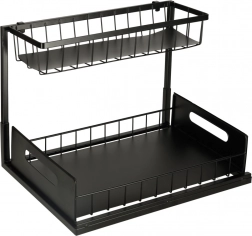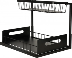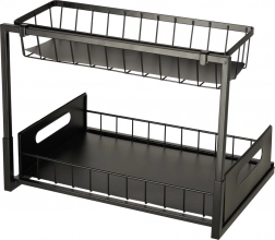 Optimizați spațiul de sub chiuvetă cu organizatorul metalic pe două niveluri, care oferă depozitare inteligentă și ordonată pentru produse de curățenie, sticle și accesorii mici. Datorită coșului inferior glisant, ajungeți ușor și la obiectele depozitate în spate, fără răscolire inutilă.