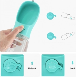 Această sticlă de apă de călătorie pentru câini combină recipientul și bolul într-un singur produs, astfel încât îi oferi animalului tău de companie apă proaspătă oricând și oriunde – fără a fi nevoie să cari accesorii suplimentare. Bolul integrat, în formă de jgheab, este confortabil pentru majoritatea raselor și permite servirea ușoară a apei cu o singură mână.
