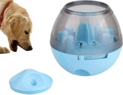 Această minge inteligentă funcționează atât ca dozator de recompense, cât și ca jucărie interactivă. Animalul vede și simte recompensele, așa că împinge mingea cu botul sau cu laba – iar pentru mișcare este răsplătit cu eliberarea unei porții mici. Blocatorul intern tip labirint limitează cantitatea de recompense eliberate și susține hrănirea lentă, benefică pentru digestie și preventivă împotriva înghițirii lacome.