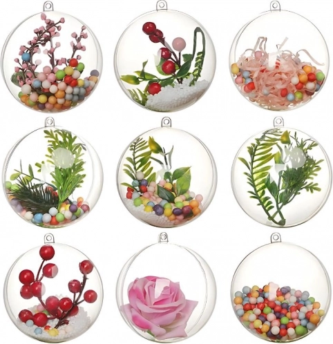 Creați decorațiuni originale pentru Crăciun, nunți și ornamente sezoniere. Bilele transparente din plastic arată grozav pe brad, coroniță și la fereastră. Sunt rezistente la impact, potrivite pentru locuințe cu copii și animale de companie, iar datorită ochiului de agățare le fixați în câteva clipe.