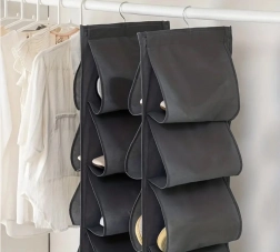 Douăsprezece buzunare adânci îți păstrează perechile preferate ordonat și fără a le strivi, în timp ce dulapul rămâne aerisit și organizat.