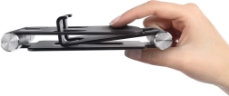 Datorită reglării line a unghiului, alegi cu ușurință poziția optimă a ecranului atât așezat, cât și în picioare. Construcția pliabilă pe două axe economisește spațiu în geantă și pe birou, astfel încât ai suportul mereu la îndemână.
