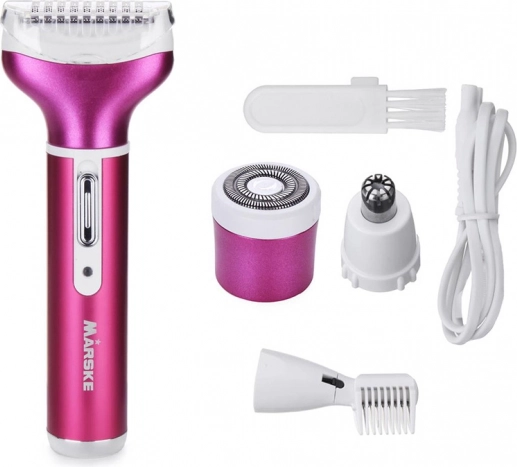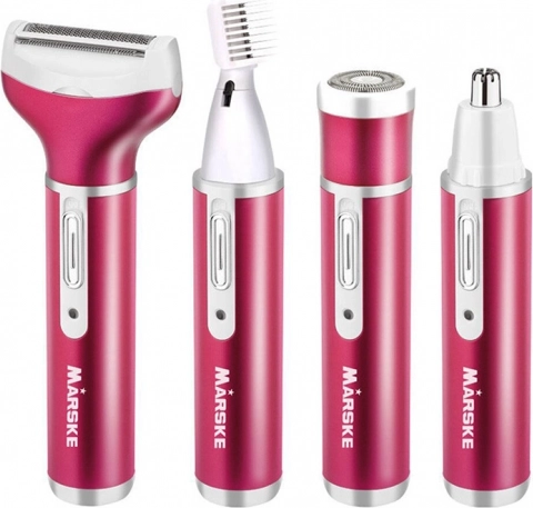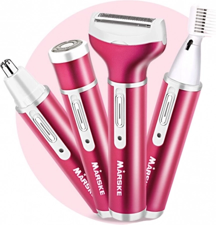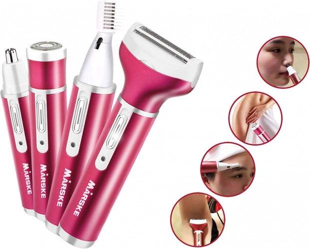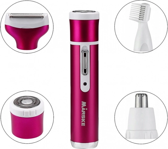 Epilator și aparat de ras pentru femei 4‑în‑1 cu capete interschimbabile – Roz