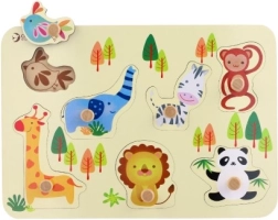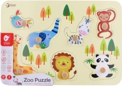 Stimulați curiozitatea copilului dumneavoastră cu un puzzle din lemn de calitate cu temă ZOO. Acest puzzle educativ și distractiv vine cu opt piese diferite de animale și o bază robustă care asigură durabilitate îndelungată.