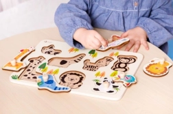 Piesele din lemn reamintesc de animalele de la ZOO, ceea ce ajută copiii să își dezvolte activitatea cerebrală și gândirea creativă.