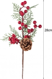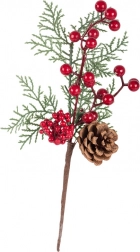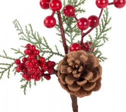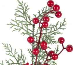 Produsul este realizat cu atenție la detaliu pentru a imita cât mai bine frumusețea naturii. Fructele roșii și frunzele verzi fine creează o compoziție ideală pentru decorul de iarnă.