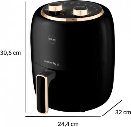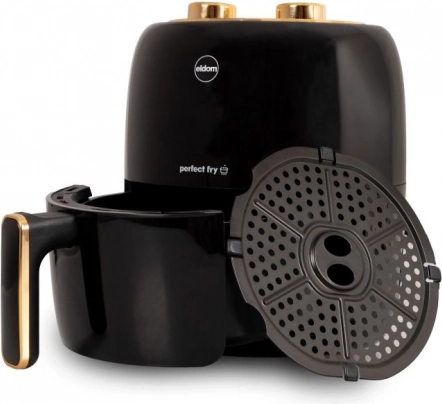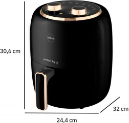 Operarea este facilitată de două butoane rotative pentru temperatură și timp. Sunt disponibile 7 programe automate, inclusiv pentru cartofi prăjiți, pește, friptură sau coacerea brioșelor, precum și modul manual pentru control maxim. Coșul și grilajul detașabile cu suprafață antiaderentă simplifică curățarea, în timp ce materialele fără BPA, mânerul rece și carcasa termoizolată asigură siguranța.