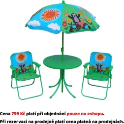 Acest set de grădină pentru copii cu motivul CÂRTIȚA KRTEČEK este ideal pentru distracția în aer liber pe terasă, balcon sau în grădină. Construcția ușoară și stabilă permite manipularea facilă, în timp ce imprimeul atractiv îi va încânta pe toți micii fani ai acestui basm clasic.