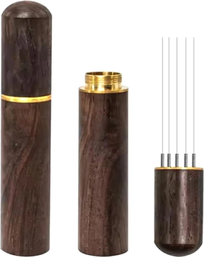 Agitator compact, ace pentru distribuirea cafelei. Design ergonomic, dotat cu mâner confortabil și capac cu aspect de lemn. Ideal pentru corectarea canalizării în espressoarele pentru cafea tip puck. Dimensiuni universale - potrivit pentru majoritatea espressorelor și cafetierelor.