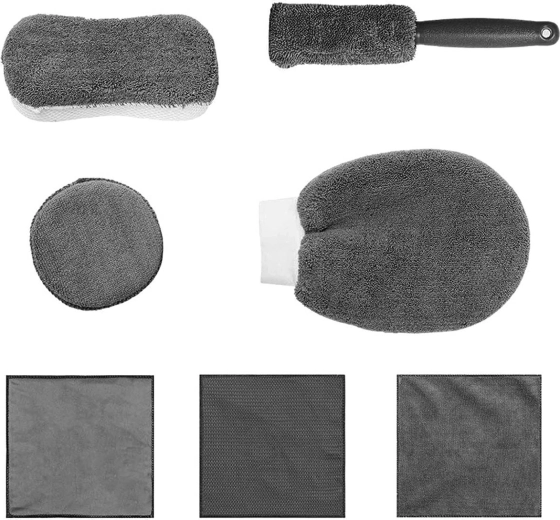 - Set de nouă piese de accesorii pentru curățarea detaliată a automobilelor.