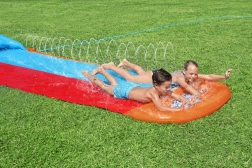 Toboganul Bestway este o alegere ideală pentru distracția estivală răcoritoare în grădină. Trebuie doar să-l desfășurați, să-l ancorați la sol și să conectați furtunul de grădină. Datorită ancorajelor robuste, toboganul rămâne pe loc, iar stropitoarele încorporate asigură un flux continuu de apă pentru o alunecare maximă.