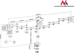 Acest suport de calitate din oțel și aluminiu turnat sub presiune permite o organizare clară și confortabilă a trei monitoare pe un singur stativ. Datorită posibilității de fixare pe marginea blatului cu ajutorul unei cleme rezistente, nu este necesară găurirea; instalarea este rapidă și sigură. Soluție ideală pentru birou, home office și setup de gaming, unde vei aprecia ergonomia îmbunătățită, productivitatea sporită și un spațiu de lucru ordonat.