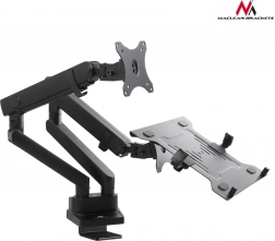 Suportul dublu pentru monitor și laptop MC-813 este conceput pentru optimizarea ergonomică a spațiului de lucru. Datorită posibilității de reglare a unghiului de înclinare, rotație și schimbare a înălțimii, acest suport permite adaptarea stației de lucru la nevoile individuale ale utilizatorului.