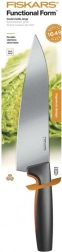 Cuțitul de bucătărie Functional Form de la Fiskars este proiectat pentru sarciuni zilnice și speciale în bucătăria ta. Dispune de o lamă lungă, lată, care taie ușor carnea, legumele și ierburile. Fabricat din oțel inoxidabil japonez de înaltă calitate, garantează o ascuțire de lungă durată.