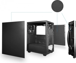 Această carcasă PC Mid Tower neagră combină un panou frontal curat și elegant cu un interior modern, gândit pentru asamblare ușoară și viitoare upgrade-uri. Datorită fluxului de aer bine gândit și numărului generos de poziții de montare, componentele tale rămân reci chiar și la sarcini ridicate.