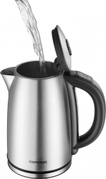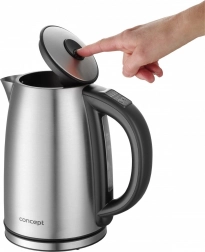 Designul din oțel inoxidabil, cu fund neted și element de încălzire ascuns, limitează depunerile și ușurează curățarea. Marele orificiu de umplere și deschiderea capacului prin buton transformă umplerea și operarea într-o chestiune de clipă. Datorită bazei rotative la 360° cu spațiu pentru depozitarea cablului, așezați fierbătorul din orice direcție.