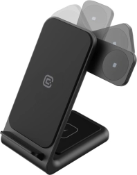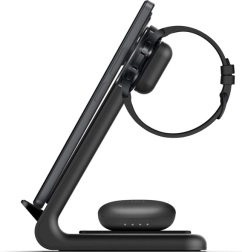Fă ordine pe birou cu stația inteligentă care le face pe toate deodată. Încărcătorul wireless 3‑în‑1 PowerSpot combină un suport pentru telefon, un modul pentru Galaxy Watch (toate modelele) și o suprafață pentru căști TWS. Datorită standardului Qi, este compatibil cu o gamă largă de dispozitive Apple și Android.
