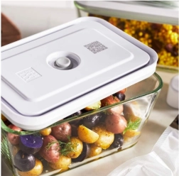 Pojarul din sticlă ZWILLING Fresh & Save este o inovație pentru iubitorii de mâncare proaspătă și sănătoasă. Acesta se remarcă prin capacitatea sa de a păstra alimentele proaspete de cinci ori mai mult datorită funcției de vid. Potrivit pentru utilizare în congelator, cuptor, cuptorul cu microunde și mașina de spălat vase, oferă o soluție completă de depozitare.