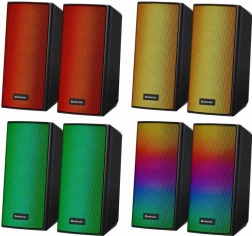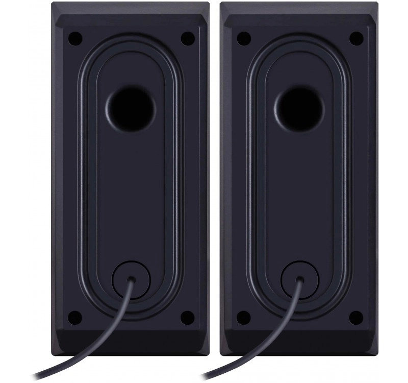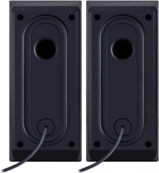 Două sateliți oferă sunet clar și echilibrat pentru lucru, studiu, jocuri și filme – ideale pe birou lângă laptop sau PC.