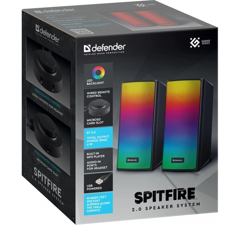 Bucură-te de sunet stereo curat într-un design elegant. Boxele DEFENDER Spitfire 2.0 combină Bluetooth 5.2 stabil cu consum redus, conectare ușoară prin alimentare USB și elemente LED efectuoase care dau viață oricărui set‑up de gaming sau de lucru.