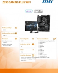 MSI Z890 Gaming Plus WiFi este echipată cu componente de cea mai înaltă calitate care garantează durabilitate și performanțe ridicate. Placa suportă procesoare LGA 1851 Intel Core Ultra, oferă suport dual-channel pentru memorii DDR5 cu overclocking până la 9200+ MT/s.