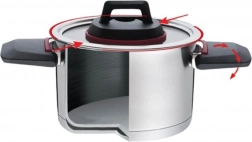 Mânerele de pe oală și capac pot fi ușor pliate, facilitând astfel depozitarea și economisind spațiu în bucătăria dumneavoastră.
