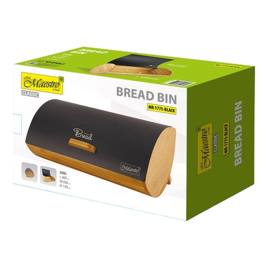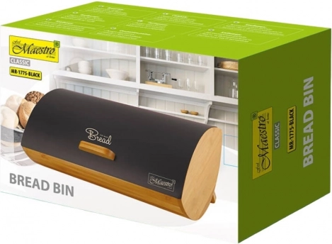 Cutia de pâine Maestro este un accesoriu elegant și practic pentru orice bucătărie modernă. Designul negru, în combinație cu elementele din bambus natural, adaugă rafinament bucătăriei, iar dimensiunile compacte asigură că nu ocupă prea mult spațiu.