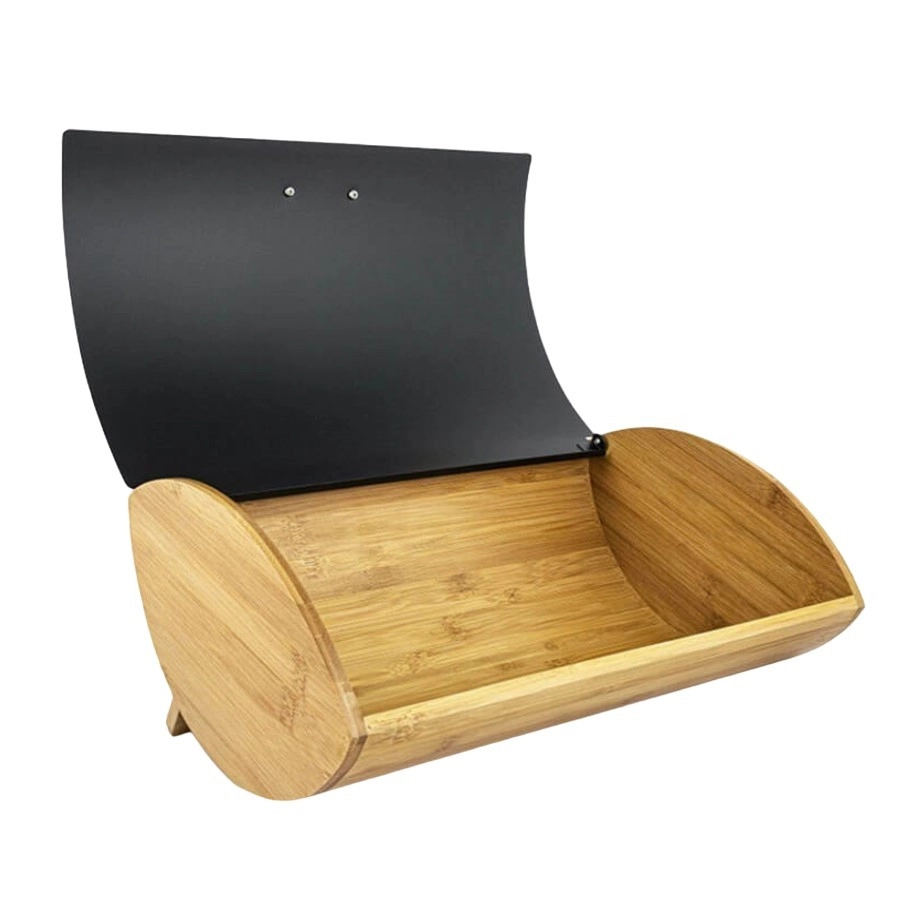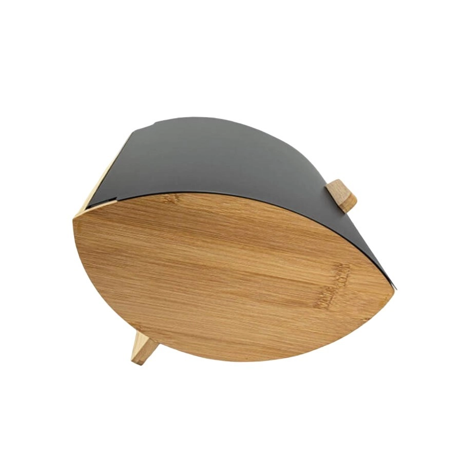 Cutie de pâine neagră stilată Maestro din oțel inoxidabil și bambus. Compactă și ecologică.