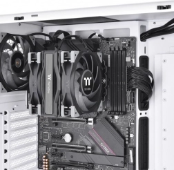 Thermaltake ToughAir 510 este un răcitor CPU tip turn, fiabil, proiectat pentru temperaturi stabile și zgomot redus. Combinația dintre două ventilatoare de 120 mm în configurație push-pull și patru heatpipe-uri din cupru de 6 mm cu contact direct evacuează eficient căldura de pe procesor și asigură performanță optimă chiar și în sarcini solicitante.
