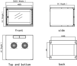 - Fante de ventilare în partea de jos și în tavan pentru instalarea a două ventilatoare de 120x120 mm
