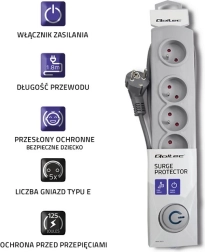 Acest prelungitor cu protecție la supratensiune este o soluție fiabilă pentru casă și birou. Vă permite să conectați în siguranță mai multe dispozitive dintr-un singur loc, să mențineți ordinea în cabluri și să aveți control deplin asupra alimentării datorită întrerupătorului cu pedală iluminat Quick Switch.