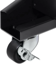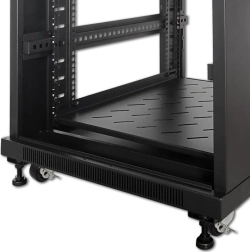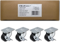 Acest set funcțional de 4 roți pivotante cu o capacitate totală de încărcare de 100kg este fabricat din aliaje metalice rezistente și materiale plastice, permițând deplasarea rapidă și sigură a dulapului rack menținându-l într-o poziție stabilă. Montarea roților de transport se realizează prin simpla prindere cu șuruburi în orificiile din structura de oțel.