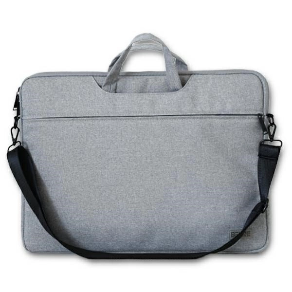 Compartimentarea practică include un compartiment principal pentru laptop, un buzunar mai mic pentru documente și două buzunare suplimentare pentru telefon, portofel, mouse, încărcător sau baterie externă. Mânerele rezistente și cureaua de umăr detașabilă asigură un transport variabil și confortabil, în timp ce țesătura texturată durabilă oferă un aspect modern și rezistență în timp.