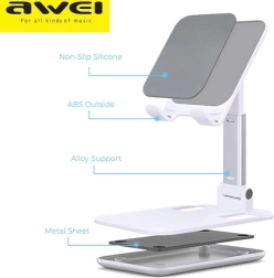 AWEI X11 este un suport de birou practic ce îmbină designul elegant cu o funcționalitate ridicată. Materialele de calitate (PC, ABS și aliaj de aluminiu) asigură durabilitate și stabilitate, în timp ce elementele din silicon protejează dispozitivul de zgârieturi și oferă un fixare fermă.
