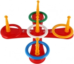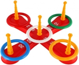 Acest joc de aruncat Cruce cu inele este combinația perfectă între distracție și educație. O modalitate excelentă de a antrena coordonarea mâină-ochi a copiilor în timp ce se joacă. Jocul include o bază în cruce cu cinci suporturi și inele colorate care trebuie aruncate pe suporturi pentru a aduna puncte.
