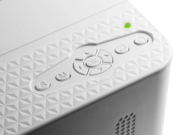 Dispozitivul permite, de asemenea, ajustarea ușoară a imaginii cu ajutorul funcțiilor de focalizare și corecție keystone, asigurând o imagine clară și aliniată corect, indiferent de poziționarea proiectorului.