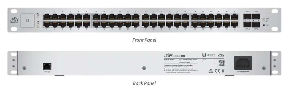 Switch‑ul funcțional Ubiquiti US-48 este disponibil în versiune administrabilă. Dispune de 48 de porturi Gigabit Ethernet și 4 porturi SFP. Suportă standardele IEEE 802.3af, IEEE 802.3at și 10G. Capacitatea de comutare este de 140 Gbit/s. Modelul poate fi montat în rack. Este echipat cu LED‑uri. Deține, de asemenea, certificate CE, FCC și IC care confirmă calitatea. Construcția sa robustă permite funcționarea la temperaturi între -5 și 40 de grade Celsius.