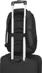 Cu ajutorul curelei de prindere, rucsacul se fixează ușor pe mânerul telescopic al trolerului. Călătoria devine mai confortabilă, mai sigură și cu mâinile libere.