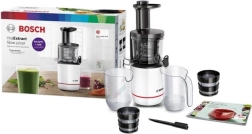 BOSCH MESM500W este un storcător lent fiabil, conceput pentru sucuri sănătoase și gustoase în fiecare zi. Presarea blândă la viteză redusă păstrează vitaminele, mineralele și culoarea naturală a fructelor și legumelor. Datorită guriuței de scurgere cu DripStop, blatul rămâne curat, fără stropi.