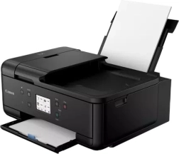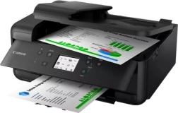 Canon PIXMA TR7650 este o imprimantă multifuncțională versatilă care combină imprimarea, scanarea, copierea și faxarea într-un design compact. Această tehnologie cu jet de cerneală permite o rezoluție înaltă de 4800 x 1200 dpi, oferind imprimare clară și clară atât alb-negru, cât și color.
