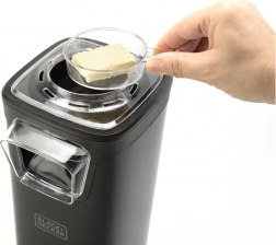 Este inclusă o cupă de măsurare multifuncțională, cu care dozezi ușor porția ideală și pe care o poți folosi pentru topirea untului sau prepararea glazurii, în timp ce aparatul funcționează. Datorită designului compact și ușor de curățat, mașina se potrivește perfect în orice bucătărie.