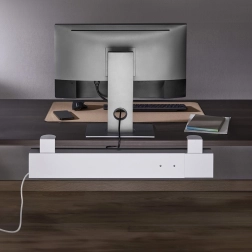 Ascunde cablurile și prelungitorul sub blatul mesei, lăsând suprafața de lucru aerisită și estetică.
