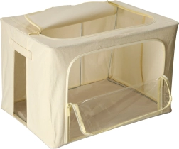 Acest spațios recipient de depozitare este ideal pentru organizarea clară a textilelor în dormitor, dressing sau camera copiilor. Capacitatea de 100 litri încape lenjerie, pături, prosoape, jucării și îmbrăcăminte de sezon, în timp ce poliesterul de calitate rezistă utilizării zilnice.